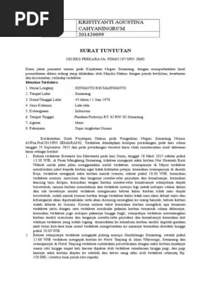 Surat tuntutan pidana dibuat oleh jaksa penuntut umum. Mempersiapkan surat tuntutan pidana untuk di ajukan pada hari sidang berikutnya. Surat ini berisikan tuntutan yang diajukan kepada hakim. Dalam penyusunan surat tuntutan pidana terdapat beberapa hal yang harus . Melakukan perbuatan pidana sebagaimana yang diatur dan.